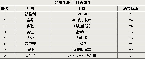 隨著中國汽車市場地位的日益提高,各大廠商越來越重中國市場,因此北京車展也引來了越來越多的全球首發(fā)新車。這屆北京車展將有8款新車全球首發(fā),包含新5系Li和E級加長版,兩款新車將在車展后國產(chǎn)上市。大眾集團除了占據(jù)一個展館之外,也帶來了兩款全球首發(fā)新車,分別為全球A8L和新輝騰。