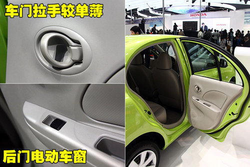 東風(fēng)日產(chǎn)瑪馳的四門(mén)車(chē)窗升降均為電動(dòng)升降,駕駛席側(cè)的車(chē)窗為一鍵式升降。中控鎖和車(chē)窗鎖定鍵也分布在這里,消費(fèi)者無(wú)需扭動(dòng)身體即可完成一系列的操作,使用起來(lái)簡(jiǎn)單方便。