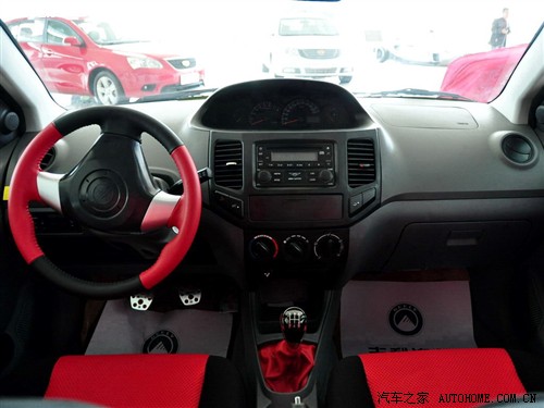 內飾在延續(xù)了普通版金鷹的同時,又進行了一些小的改動和創(chuàng)新,最明顯的變化莫過于紅黑相間的新造型方向盤和運動風格明顯的座椅,另外,擋把遮擋處的顏色也改為紅色的皮革材料,鋁合金踏板也有紅色元素裝點。其它方面依然維持了普通版金鷹的造型,中置儀表今天看來已沒有任何亮點可言,整體的功能和配置還是講求實用為主。