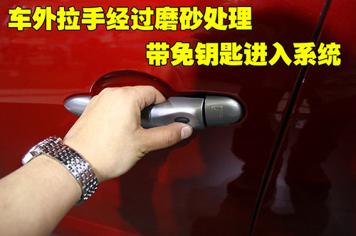 雷諾新風(fēng)景的外車門拉手經(jīng)過(guò)磨砂處理,觸摸時(shí)手感很好。這款車的外部開(kāi)啟方式為“拉動(dòng)式”,其整體的做工比較精細(xì),在反復(fù)開(kāi)啟車門時(shí)發(fā)現(xiàn),車門把手與連接處沒(méi)有松動(dòng)的跡象,并且開(kāi)啟時(shí)手感比較厚重。