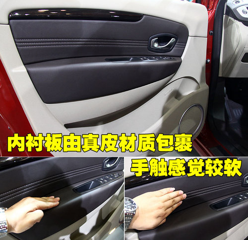 雷諾新風(fēng)景的車門內(nèi)板采用了真皮材質(zhì)包裹,手觸感覺(jué)軟硬度適中,在長(zhǎng)時(shí)間駕駛車輛時(shí),手臂長(zhǎng)時(shí)間擱置不會(huì)感到不適。