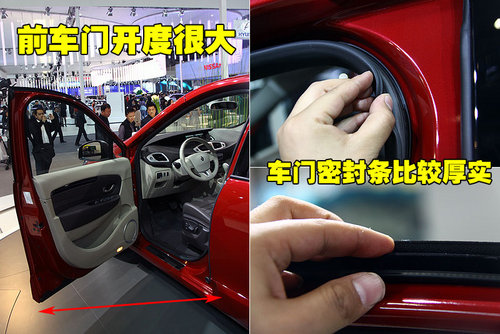 雷諾新風(fēng)景駕駛席一側(cè)的車門完全打開(kāi)后,車門開(kāi)啟角度很大,無(wú)論何種身材的消費(fèi)者在上下車時(shí)都會(huì)比較輕松。車門四周采用雙密封條,橡膠密封條手觸感覺(jué)比較厚實(shí),與車門緊密貼合時(shí)能夠起到很好的密封、隔音的作用,同時(shí)也可以達(dá)到在關(guān)門時(shí)可以起到很好的緩沖作用。