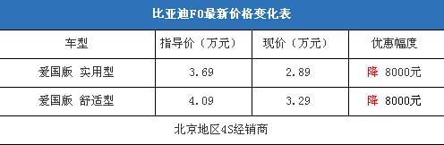 近日,編輯從北京地區(qū)比亞迪4S經(jīng)銷商處了解到,近期比 亞迪F0的現(xiàn)車比較充足,基本上可以滿足消費者的購車需求。目前購車最高可以優(yōu)惠8000元現(xiàn)金,銷售人員透露優(yōu)惠幅度到店還可以再議,在店內(nèi)上商業(yè)保險的話可以打9折。