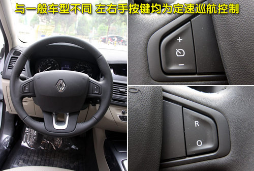 如同外觀一樣,法國(guó)人的設(shè)計(jì)永遠(yuǎn)是我們摸不透的,按一般車(chē)型來(lái)講,方向盤(pán)中多會(huì)集成音響及定速巡航控制鍵,而新拉古那方向盤(pán)的左右手位置均為巡航按鍵。