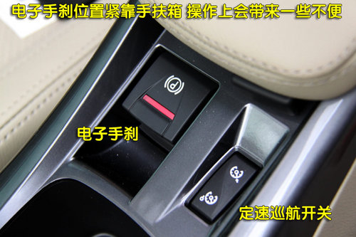 電子手剎的位置位于手扶箱前側(cè),實(shí)際操作中按照正常坐姿會(huì)感覺(jué)到有一些不便,但該功能在使用中比較便利,按鍵阻尼的手感也比較適中,并且電子手剎的配置確實(shí)非常實(shí)用。在電子手剎旁則是定速巡航系統(tǒng)的開(kāi)關(guān)鍵,這與前段時(shí)間評(píng)測(cè)的科雷傲相同,同樣在使用中會(huì)感到一些不便,我甚至在想,為什么不能把這個(gè)功能都整合到方向盤(pán)中呢?