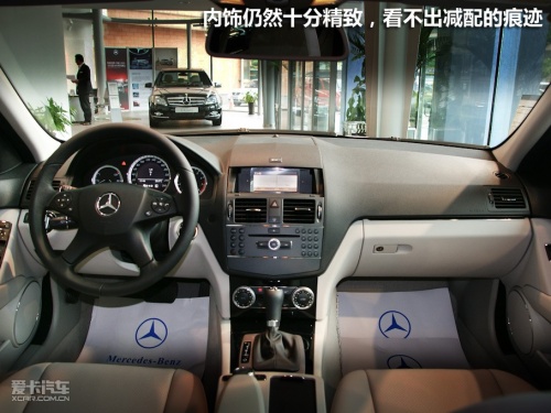 打開車門,我沒有看到粗糙的做工和廉價的用料,整車內(nèi)飾仍然十分細(xì)致。通過車內(nèi)閃閃發(fā)光的鍍鉻裝飾與精良的做工能感受到奔馳一絲不茍的造車品質(zhì)。車內(nèi)的減配在不容易察覺的地方,例如座椅電加熱功能被省略,座椅的電動調(diào)節(jié)也從車門處移到座椅下。自動防眩后視鏡也被減配為手動調(diào)節(jié)。