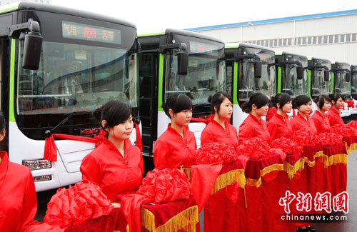 中新網(wǎng)重慶6月11日電 (記者 郭晉嘉)11日,重慶首批50輛新能源氣電混合動力公交車交付該市公交集團使用,一輛車每年可節(jié)約燃?xì)饨f立方米。