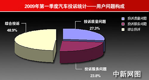 2009年一季度共收到用戶投訴1856例,其中有效投訴為1742例,與去年同期相比,增加了17.8%。一季度汽車(chē)產(chǎn)品的投訴量和投訴解決率相比上季度有了較大提高。涉及企業(yè)包括一汽大眾、上海大眾、 東風(fēng)雪鐵龍、上汽通用五菱、上海通用、長(zhǎng)安福特、上海汽車(chē)、廣州本田、天津一汽、廣州豐田、吉利汽車(chē)、奇瑞汽車(chē)等幾十家國(guó)內(nèi)汽車(chē)生產(chǎn)企業(yè)。