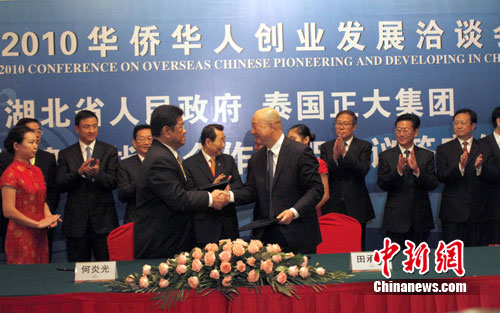 中新社武漢9月15日電(記者 張冬冬 艾啟平)泰國(guó)華商企業(yè)正大集團(tuán)15日晚與湖北省政府在此間簽署戰(zhàn)略合作框架協(xié)議,并達(dá)成在湖北省襄樊市建設(shè)100萬(wàn)頭生豬產(chǎn)業(yè)化項(xiàng)目。