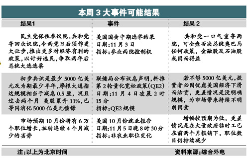美股本周面臨今年來最重要的一周,主因是聯(lián)儲局公布次輪量寬政策(QE2)內(nèi)容、國會中期選舉及就業(yè)報告為首的多個重要數(shù)據(jù)結(jié)果,料將令大市走勢反復(fù)波動。