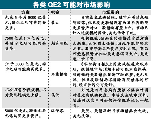 QE2已在市場討論兩個月,但這個舉措史無前例,效果無人知曉,甚至連聯(lián)儲局官員也明顯對本周應(yīng)推出多大規(guī)模的QE2仍心中無底。