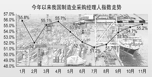中國(guó)物流與采購聯(lián)合會(huì)1日發(fā)布數(shù)據(jù),11月中國(guó)制造業(yè)采購經(jīng)理指數(shù)PMI為55.2%,創(chuàng)近7個(gè)月來新高,環(huán)比上升0.5個(gè)百分點(diǎn)。自8月份以來,PMI指數(shù)連續(xù)4個(gè)月回升。