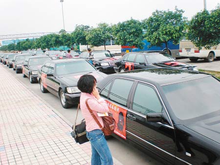 昨日下午2時(shí)30分許,在兩輛“三菱”越野車(chē)的帶領(lǐng)下,30輛清一色的黑色奔馳轎車(chē)列隊(duì)駛?cè)胛靼蚕剃?yáng)國(guó)際機(jī)場(chǎng)停車(chē)場(chǎng),引起不少過(guò)往乘客駐足觀看。 “不知道哪位貴賓要來(lái)西安?”不少人都小聲議論著。30輛黑色奔馳轎車(chē)中,西安本地牌照的不少,還有北京、天津牌照的車(chē)輛,全部為S500、S6OO系列。