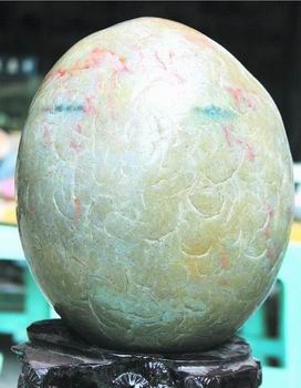 經(jīng)專家鑒定,這塊石頭是罕見的玉化了的“五彩云紋石”,非常難得,通常只有四川岷江才有,價(jià)值在5萬至8萬元之間。(侯莉 成都商報(bào)記者 何東 攝影報(bào)道)