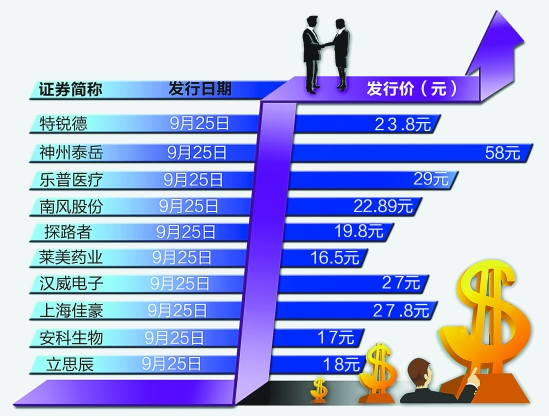 今天,投資者將迎來創(chuàng)業(yè)板新股的第一場盛宴:首批10只新股“十箭齊發(fā)”,中簽率有望比中小板新股大大提高。不過,創(chuàng)業(yè)板十新股發(fā)行市盈率奇高,最低的也有40倍。以發(fā)行價來看,最高的神州泰岳達到58元,最低的萊美藥業(yè)也有16.5元。