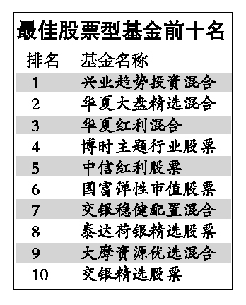 全球著名商業(yè)雜志《福布斯》中文版昨日發(fā)布2009中國基金排行榜。興業(yè)趨勢投資混合(LOF)、富國天利增長債券和華夏興華封閉分別在股票型基金、普通債券基金和封閉式基金中拔得頭籌。