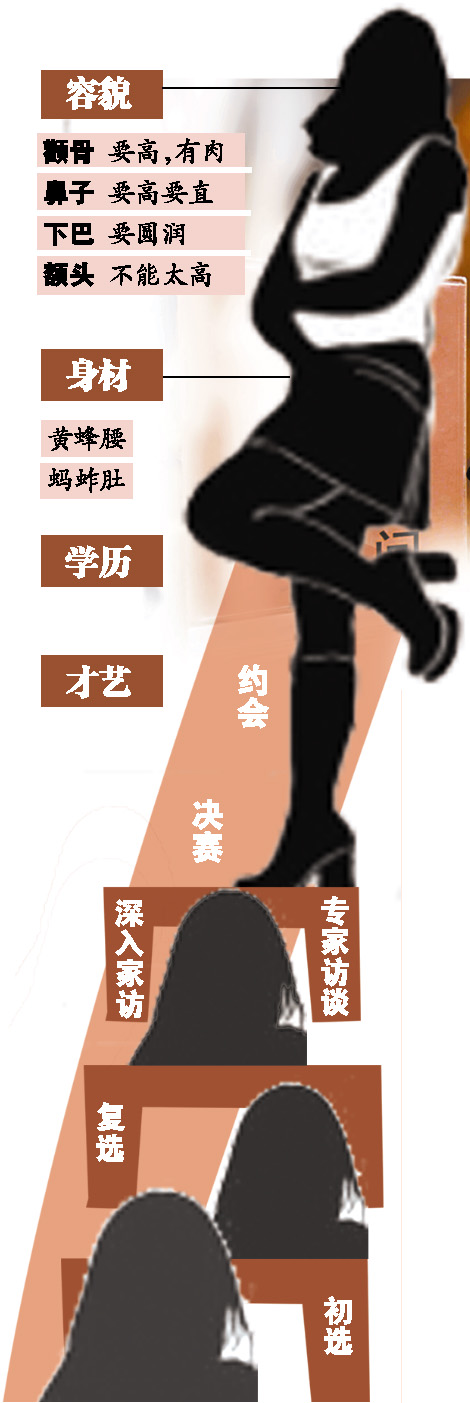 “此次甄選全球僅限18位男士報名,目前已經(jīng)確認報名的有10人!背逃律嘎叮@10人中有坐擁數(shù)十億身家的美籍華人,也有金融巨頭和地產(chǎn)大鱷,他們的資產(chǎn)基本過億,平均年齡38歲。記者了解到,10名“鉆石王老五”當中還有一位來自廣州,從事房地產(chǎn)行業(yè),目前已45歲。對于要找的另一半,這位廣州富豪要求必須是“黃蜂腰、螞蚱肚”。
