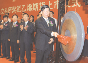 上市儀式上,中國證監(jiān)會(huì)主席助理姜洋宣讀了《關(guān)于同意大連商品交易所上市聚氯乙烯期貨的批復(fù)》。大連商品交易所總經(jīng)理劉興強(qiáng)主持了上市儀式。他說,聚氯乙烯期貨的上市,既是交易所貫徹落實(shí)黨中央國務(wù)院“穩(wěn)步發(fā)展期貨市場(chǎng)”要求的重要舉措,也是大商所向綜合性期貨交易所轉(zhuǎn)變的又一個(gè)里程碑。他表示,大商所將不辜負(fù)各界的殷切期望,在保持市場(chǎng)平穩(wěn)運(yùn)行的基礎(chǔ)上,把這一品種做深做細(xì)做精,為國民經(jīng)濟(jì)發(fā)展貢獻(xiàn)新的力量。