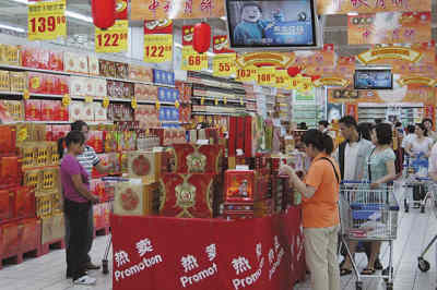 天津易買得紅橋店銷售人員介紹,小月餅彌補了市場的空缺,使賣場內(nèi)高中低檔月餅都比較齊全。小月餅雖然包裝簡單,但包裝上注明了生產(chǎn)日期、配料、口味等,質(zhì)量可以讓消費者放心。 (王飛航 孟華 張琛)