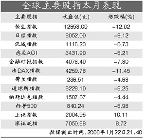 2009年的第一個交易日,道瓊斯指數(shù)曾大漲258點,報收于9034.69點,然而,這也成為截至目前的最高點。在隨后的近三周中,道瓊斯指數(shù)不斷下跌,本周二更是暴跌4%,收于7949點。即便是周三道指反彈3.51%,今年以來,道指最大跌幅也已高達(dá)9%,納斯達(dá)克指數(shù)累計最大跌幅高達(dá)8.7%。