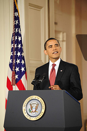 美國總統(tǒng)貝拉克·奧巴馬9日晚舉行就任以來首次黃金時間段新聞發(fā)布會。
