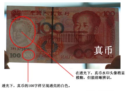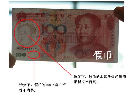 一看。即看鈔票上的固定人像水印、白水印、光變油墨面額數(shù)字、交印對應圖案、隱形面額數(shù)字等特征。據(jù)介紹,真鈔票的“固定人像水印”有立體感,清晰度高,“白水印”的高透光反光性強,“交印對應圖案”是一個圓形方孔錢。這三處在迎光透視時都可以清楚看見;光源角度發(fā)生改變時,真幣的“光變油墨面額數(shù)字”會有綠色和藍色顏色的漸變;此外,在與眼睛平行上下抖動時,可以看到“100”的隱形面額數(shù)字。