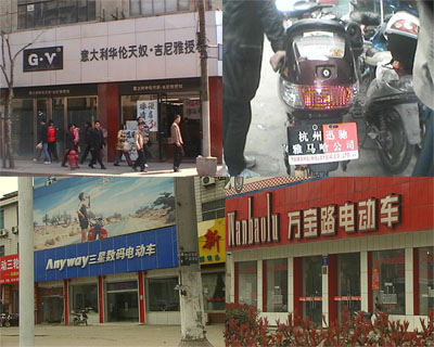 在中國電動車生產(chǎn)最集中的江蘇無錫安鎮(zhèn),很多品牌都掛上了雅馬哈、鈴木等監(jiān)制的字樣,更有甚者,直接叫“三星數(shù)碼電動車”,“萬寶路電動車”。