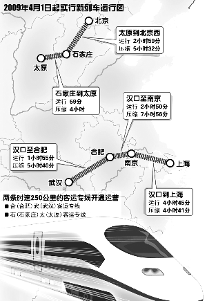 張曙光將兩條時速250公里客運專線的開通運營視為調圖最大的亮點。4月1日起,合武客運專線開通運營,與合寧客運專線一道,構成了長三角與中南區(qū)域的最短路徑,開通后開行8對動車組,將大幅壓縮華東到中南的時空距離。同時開通的還有石太客運專線,此線構成連接西部與華北的快捷運輸通道,將開行動車組27對,對拉動其幅射區(qū)域的經濟社會發(fā)展也有重要意義。