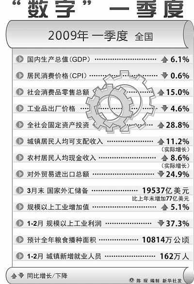 與上年同期比,一季度GDP6.1%的增長幅度回落了4.5個百分點(diǎn),雖然不是個漂亮的數(shù)字,但放在金融危機(jī)的大背景下看,各個方面都會承認(rèn)這是一個來之不易、好于預(yù)期的增長速度。細(xì)讀統(tǒng)計數(shù)據(jù)的8個部分,國民經(jīng)濟(jì)運(yùn)行的積極變化顯而易見。國家統(tǒng)計局新聞發(fā)言人李曉超用兩個“穩(wěn)”、兩個“快”、三個“高”和三個“縮小”,來概括這種積極變化的幾個方面。