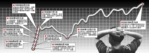 同期滬市上市公司從440家增加到446家,深市從415家增加到424家,5·19之初的深滬股市總市值和流通市值分別為18282億元和5297億元,上漲到最高點分別達到30513億元和9073億元,增值67%和71%。