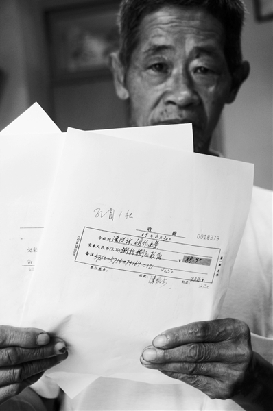陳昌德的情況并非特例。記者查閱當年同一月份農(nóng)民繳納電費的單據(jù)后發(fā)現(xiàn),孔目村2組的周友清,2007年5月只用電2度,繳納電費62.4元,平均每度電31.2元;同為2組的范治乾當月只用電3度,繳納電費62.9元,平均每度電20.9元。