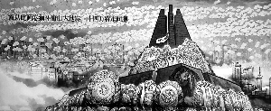 繪制長(zhǎng)卷前后歷時(shí)四年,中間數(shù)易其稿,嘔心瀝血,終于在今年完成了這幅高18.5米、長(zhǎng)80多米的《唐山大地震祭》巨幅長(zhǎng)卷。長(zhǎng)卷分為地震將臨、神兵天降、自救互救、八方支援、傷員外運(yùn)、清尸防疫、恢復(fù)生產(chǎn)、重建家園、再組家庭、歡送親人十部分。為表現(xiàn)唐山地震中的磨難,我們以“祭”字為切入點(diǎn),展示唐山人在大悲大痛面前的壯烈激昂,以黑白為基調(diào),全景式地展現(xiàn)凝重悲壯的場(chǎng)景,勾勒出母親的哀慟、孩童的驚恐、人們絕望而又渴生的奮爭(zhēng),以及在那死亡彌漫的廢墟間閃動(dòng)著無(wú)數(shù)紅領(lǐng)章和五角星,讓觀者如身臨其境。當(dāng)年唐山抗震救災(zāi)指揮部副總指揮遲浩田將軍特為畫(huà)卷題詞:“那萬(wàn)眾一心,共赴危難的感人情景,令我終生難忘!