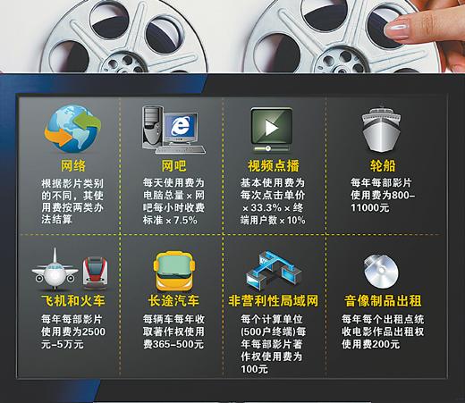 除網(wǎng)吧、長途車外,影著協(xié)還將逐步推進(jìn)網(wǎng)絡(luò)、視頻點播、飛機(jī)、火車、非營利性局域網(wǎng)、音像制品出租等領(lǐng)域電影使用費的收取。