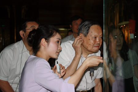 2010年9月11日,著名科學(xué)家、諾貝爾物理學(xué)獎(jiǎng)獲得者楊振寧教授一行在四川省德陽(yáng)市市長(zhǎng)陳新有、廣漢市委書(shū)記楊波等陪同下,參觀了三星堆博物館。