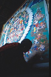 明天將在申城開幕的《西藏大型文化藝術(shù)展》令人關(guān)注。前天下午,幾位藏族民間藝術(shù)家風(fēng)塵仆仆地趕到上海。聊起唐卡,說(shuō)起藏族藝術(shù),他們?nèi)盏闹圮噭陬D仿佛化作烏有。