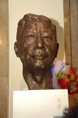 當(dāng)晚,作為紀(jì)念老舍誕辰110周年的重要活動(dòng),由北京人民藝術(shù)劇院組織鑄造的老舍先生頭像雕塑在首都劇場舉行了隆重的揭幕儀式,以此向這位為北京人藝奠定了風(fēng)格基礎(chǔ)的文學(xué)巨匠致敬。