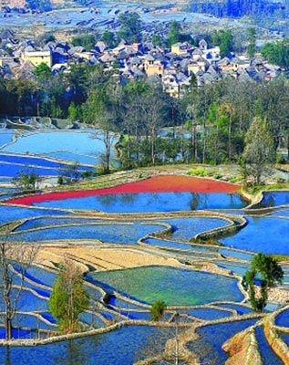 早春二月,云南省紅河哈尼族彝族自治州元陽縣近20萬畝梯田已灌水泡田進入備耕期。放眼望去,山嶺溝壑間千層水網(wǎng),萬疊田疇,或波光粼粼,或波平如鏡,景色奇幻。每天有眾多中外游人及攝影愛好者來這里觀光采風。 為將著名的紅河哈尼梯田申報為世界文化遺產(chǎn)保護地,云南省紅河哈尼族彝族自治州特別邀請由中國社會科學院10多名文史專家組成的國情調(diào)查組于2月16日至19日赴元陽縣考察梯田,為申遺出謀劃策。經(jīng)數(shù)日深入調(diào)研,專家們認為,紅河哈尼梯田同時具備物質(zhì)與非物質(zhì)世界文化雙遺產(chǎn)特征,應(yīng)注重可持續(xù)發(fā)展,將生態(tài)環(huán)境保護與水資源科學利用相結(jié)合,并多元化立體推介其梯田文化的深刻內(nèi)涵。