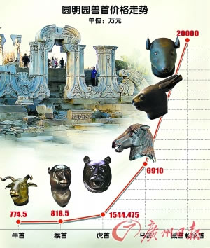 據(jù)悉,圓明園十二生肖獸首銅像流散海外近150年來(lái),目前已經(jīng)有牛、虎、馬、猴、豬五首通過(guò)各種渠道回歸中國(guó),鼠首和兔首銅像也已現(xiàn)身,剩余龍、蛇、羊、雞、狗五首至今下落不明。