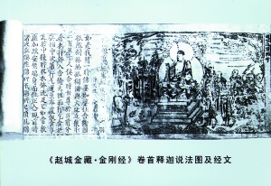 雖然紙卷泛黃、塵穢封積,但字跡清晰可辨。范成法師查點(diǎn)發(fā)現(xiàn),這些經(jīng)卷每版一面二十三行,每行十四字,字體極為古樸。其中印有宋景祐二年(公元1035年)的跋文,捐資刻印的信士?贪嬷,或?yàn)槲宕┠,而刻竣印?jīng),極可能是在金代。