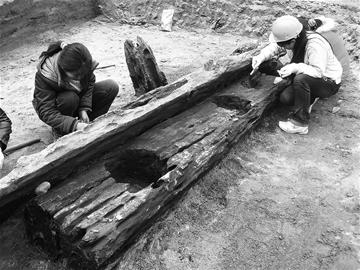 昨(3)日,在現(xiàn)場(chǎng)負(fù)責(zé)發(fā)掘的考古人員張擎帶領(lǐng)下,記者進(jìn)入了考古現(xiàn)場(chǎng),映入記者眼簾的是一些橫木和柱子。保存較為完整的一根柱礎(chǔ)底板長(zhǎng)3.4米、寬0.45米、厚0.3米,其上有4個(gè)圓形柱洞,最高的一根立柱,高1.4米、最大直徑0.3米。這都是些什么呢?“這可是本次發(fā)掘的最大發(fā)現(xiàn),超長(zhǎng)的豪華漢代廊橋!”張擎激動(dòng)地說,“從木橋的結(jié)構(gòu)和古河道內(nèi)出土的遺物推測(cè),這座木橋是漢代典型的建筑,結(jié)構(gòu)與2001年在金沙遺址蘭苑地點(diǎn)發(fā)現(xiàn)的漢代木橋完全相同,民間又叫它‘風(fēng)雨橋’!
