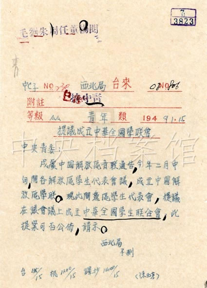 1949年3月1日至6日,中華全國(guó)學(xué)生第十四屆代表大會(huì)在北平召開(kāi)。會(huì)上正式成立了中華全國(guó)學(xué)生聯(lián)合會(huì)(簡(jiǎn)稱(chēng)全國(guó)學(xué)聯(lián)),討論制定了《中華全國(guó)學(xué)生聯(lián)合會(huì)章程》,選舉劉希圣等36人組成全國(guó)學(xué)聯(lián)執(zhí)行委員會(huì)。會(huì)議確定了全國(guó)學(xué)生聯(lián)合會(huì)的任務(wù)是在中國(guó)共產(chǎn)黨的領(lǐng)導(dǎo)下,進(jìn)行愛(ài)國(guó)主義和共產(chǎn)主義宣傳教育,幫助同學(xué)進(jìn)步和成長(zhǎng),做黨和政府聯(lián)系同學(xué)的橋梁和紐帶,維護(hù)同學(xué)正當(dāng)利益,加強(qiáng)各民族同學(xué)團(tuán)結(jié),發(fā)展同各國(guó)學(xué)生和學(xué)生組織的友誼和合作。全國(guó)學(xué)聯(lián)實(shí)行團(tuán)體會(huì)員制,全國(guó)學(xué)聯(lián)的最高權(quán)力機(jī)關(guān)是全國(guó)學(xué)聯(lián)代表大會(huì)。