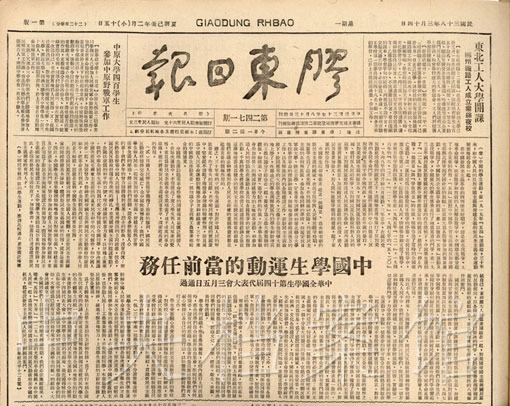 9. 1949年3月14日,《膠東日報》發(fā)表的中國學生運動的當前任務(wù)