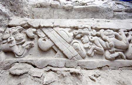 新發(fā)現(xiàn)的這些石板有26英尺長,疊加在一起,制作年代在公元前300年,石板上顯示的是瑪雅核心神話經(jīng)典《波波爾·烏》中描寫的情景。埃爾·米拉多爾遺址研究負(fù)責(zé)人理查德·漢森11日說,研究人員挖掘這個(gè)世界上最大的古瑪雅城市時(shí),用了3個(gè)月時(shí)間才發(fā)現(xiàn)這些雕刻。