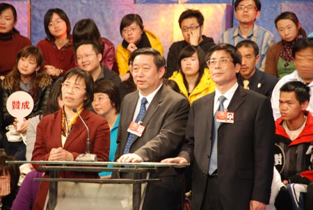 秉承以往兩年的傳統(tǒng),“兩會(huì)”期間,有“多言堂”之稱的鳳凰衛(wèi)視品牌欄目《一虎一席談》,再次邀請(qǐng)到數(shù)十位人大代表、政協(xié)委員走進(jìn)演播室,分別以“兩會(huì)”關(guān)注的圓明園獸首拍賣事件及戶籍改革為話題,與數(shù)十位各行各業(yè)的民意先鋒展開論辯,現(xiàn)場(chǎng)多元觀點(diǎn)碰撞、思想激烈交鋒。