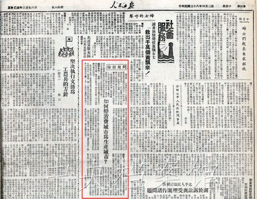 4. 1949年4月3日《人民日報》發(fā)表的問題討論:如何變消費城市為生產(chǎn)城市