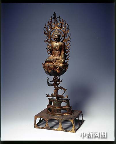 據(jù)浙江省博物館工作人員介紹,安放在雷峰塔天宮內(nèi)的“五代鎏金純銀阿育王塔”,及其塔內(nèi)供奉舍利的金瓶,在雷峰塔倒塌時(shí),此塔被嚴(yán)重壓扁,2008年底成功修復(fù),因此這次赴臺(tái)是在臺(tái)灣的首次亮相。而“唐五代鎏金銅釋迦牟尼佛說(shuō)法像”造型精美,釋迦牟尼佛結(jié)跏趺坐于盤(pán)龍托舉的蓮座上,身后是鏤空火焰紋大背光,靜謐的佛、張揚(yáng)的龍、升騰的烈焰,三者的精妙組合成就了一件藝術(shù)佳作。
