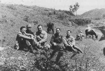 他們的旅程中有許多時(shí)候是坐火車的,由于轟炸或軍隊(duì)轉(zhuǎn)移,火車有時(shí)一停就是數(shù)小時(shí),甚至幾天。“我們坐在河岸上,看著十九師的士兵們從舢舨上爬到岸邊,還帶著馬匹、機(jī)關(guān)槍和灶具。他們有著真正戰(zhàn)士的真實(shí)而又堅(jiān)強(qiáng)的神色,像流浪者那樣頑強(qiáng)而務(wù)實(shí)。經(jīng)驗(yàn)教會(huì)他們究竟該攜帶什么設(shè)備——一個(gè)熱水瓶、一頂草帽、筷子、一把傘及一雙備用的膠鞋。每個(gè)人的腰帶上都掛著一條洗臉巾,像洗碟布,系在一起的是兩三顆手榴彈,它們看上去像微型的意大利吉地安酒的酒瓶!
