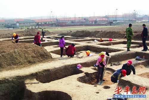 從3月26日開始,經(jīng)國家文物局批準(zhǔn),山東大學(xué)考古實(shí)習(xí)隊(duì)與青島市文物保護(hù)考古研究所合作,對(duì)青島市即墨北阡文化遺址進(jìn)行了第二次考古鉆探和發(fā)掘。記者 4月6日采訪了解到,在2007年第一次發(fā)掘的基礎(chǔ)上,此次又新發(fā)掘了四座周代墓葬,發(fā)現(xiàn)了成套的陶器及殉狗等,同時(shí)還發(fā)現(xiàn)了大汶口文化早期的二次合葬墓及“紅燒土”房屋遺址等。據(jù)介紹,本次發(fā)掘活動(dòng)將持續(xù)到 5月底,力爭(zhēng)通過發(fā)掘和研究追溯和還原6000多年前先民們的生活狀態(tài)。