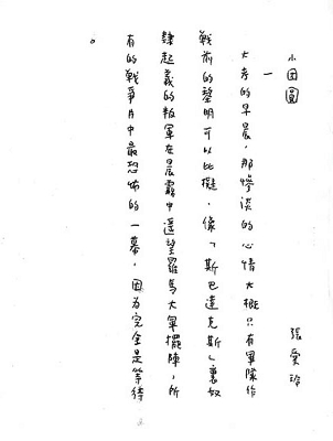 這兩個(gè)月我一直在忙著寫(xiě)長(zhǎng)篇小說(shuō)《小團(tuán)圓》,從前的稿子完全不能用,F(xiàn)在寫(xiě)了一半。這篇沒(méi)有礙語(yǔ)! 我在《小團(tuán)圓》里講到自己也很不客氣,這種地方總是自己來(lái)揭發(fā)的好。當(dāng)然也并不是否定自己。