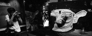 此次展覽集中了部分金沙遺址考古發(fā)掘的最新成果和最有代表性的精美文物,如金人面形器、鳥首魚紋金帶、四節(jié)玉琮、四出有領(lǐng)玉牙璧、刻紋石磬等。一件長達1.8米的金沙象牙的重量以噸計。